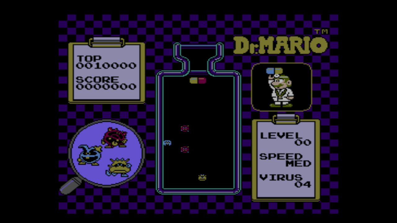 ドクターとなったマリオのアクションパズルゲーム!! ウイルスをやっつけるカプセルをどんどん投げ入れろ!! 音楽がイカスゲーム。